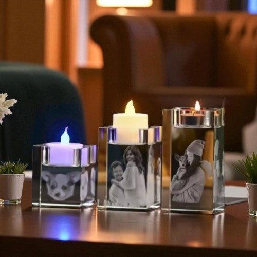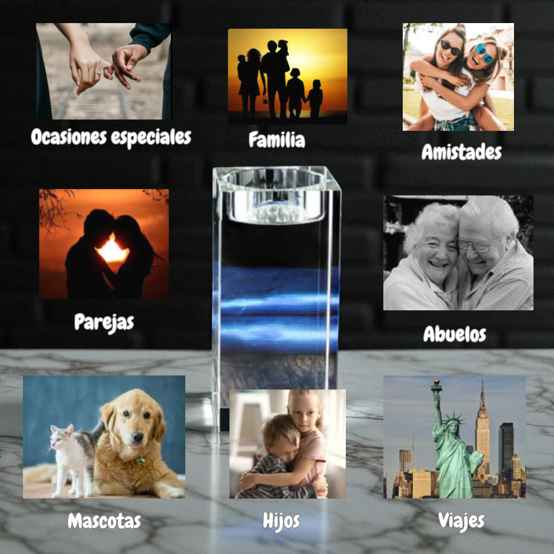 Tu Portavelas llegara totalmente personalizado, la vela es totalmente a tus gustos y olores es por ello que no viene incluida por temas de embalaje. Adicionalmente puedes complementar su Portavelas con una base LED para mejor apreciacion.